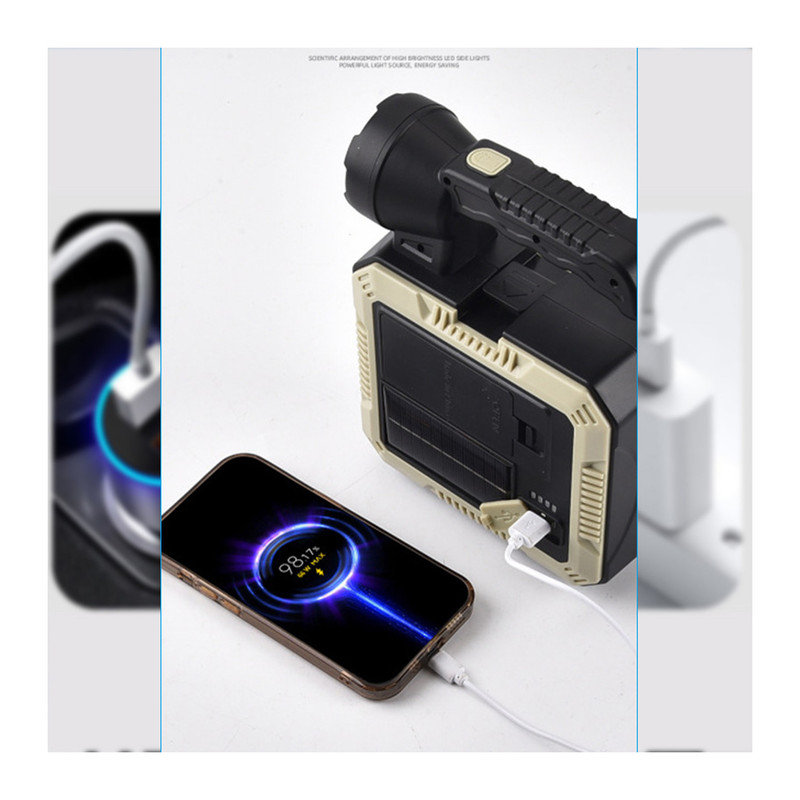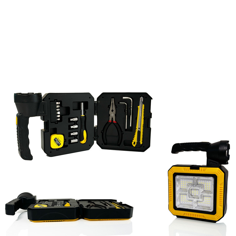 - دارای جعبه ابزار - دارای صفحه خورشیدی جهت شارژ - دارای خروجی پاوربانک - دارای 2 عدد باتری 18650 قابل تعویض - دارای چراغ خطر قرمز - شارژ با کابل تایپ C همراه محصول