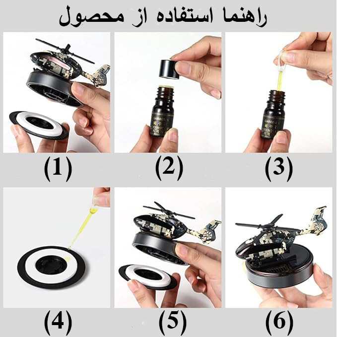 این خوشبوکننده هنگامی که در معرض نور خورشید قرار گیرد پره های آن شروع به چرخش میکند. اقلام همراه:قطره چکان,پد نانو سرامیکی,خوشبو کننده مایع.