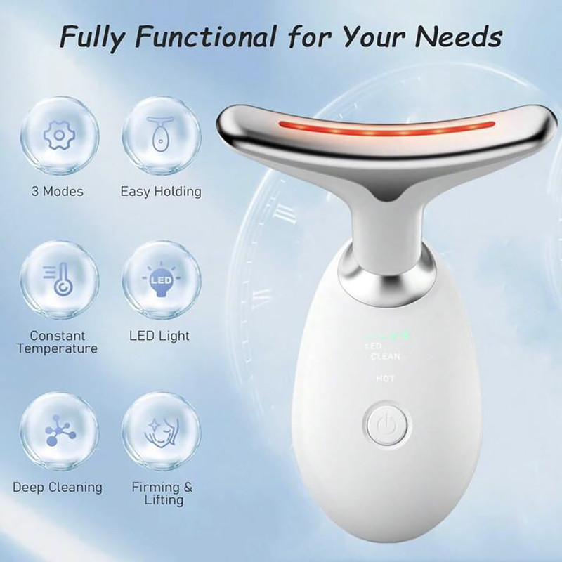 ماساژور ضد چروک صورت و گردن تیروس طراحی شده در جهت لیفت صورت و گردن، که برای جوانسازی پوست صورت و گردن به کار میرود و تاثیر چشمگیری در مدت کوتاه دارد. اولا حالت ماساژور که میتواند در لایههای عمیق پوست جایی که کلاژن الاستین شکل میگیرند موثر باشد و فرایند جوانسازی طبیعی پوست را سرعت دهد که نتیجهی این فرایند پوستی شفاف و جوانتر است. و از سوی این دستگاه به گونه ای است که میتواند به راحتی برای مناطق پوست صورت مورد استفاده قرار بگیرد. این دستگاه چندمنظوره دارای نورها بر اساس تکنولوژی های جدید نوری است که میتواند لکه را کم کند، به پوست حالت ارتجاعی دهد. قرمزی و کم و مک را رفع کند و چربی پوست را تنظیم نماید همچنین در کاهش اثرات زخم روی پوست و رفع خطوط و رفع خستگی پوست صورت و گردن بسیار موثر است. طراحی شده با سر ماساژ خمیده که به راحتی با منحنی صورت و بدن شما متناسب است – دستگاه هوشمند و کم مصرف به طور خودکار هنگامی که سر دستگاه با پوست تماس پیدا می کند شروع به کار می کند.