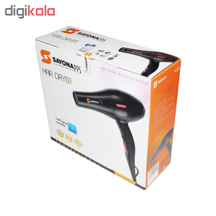 سایونا برند نام آشنا در تولید محصولات با کیفیت برقی است.یکی از این محصولات با کیفیت سشوار سايونا 2000 وات مدل SY-1300 است. این محصول با بهره گیری از موتور AC دارای قدرت پرتاب باد بسیار بالایی است و در دسته سشوار های حرفه ای قرار میگیرد.روی دسته این محصول 3 دکمه تعبیه شده که آنها تنظیم حرارت سشوار و سرعت دمیدن باد را به عهده دارند به این صورت که یک دکمه جهت ایجاد باد سرد به طور لحظه ای است. یک دکمه 3 حالت بدون حرارت، حرارت کم و حرارت زیاد را انجام میدهد. یک دکمه هم تنظیم 3 حالت باد خاموش، سرعت کم و سرعت زیاد را به عهده دارد.همچنین درون بسته بندی سری متمرکز کننده وجود دارد.
