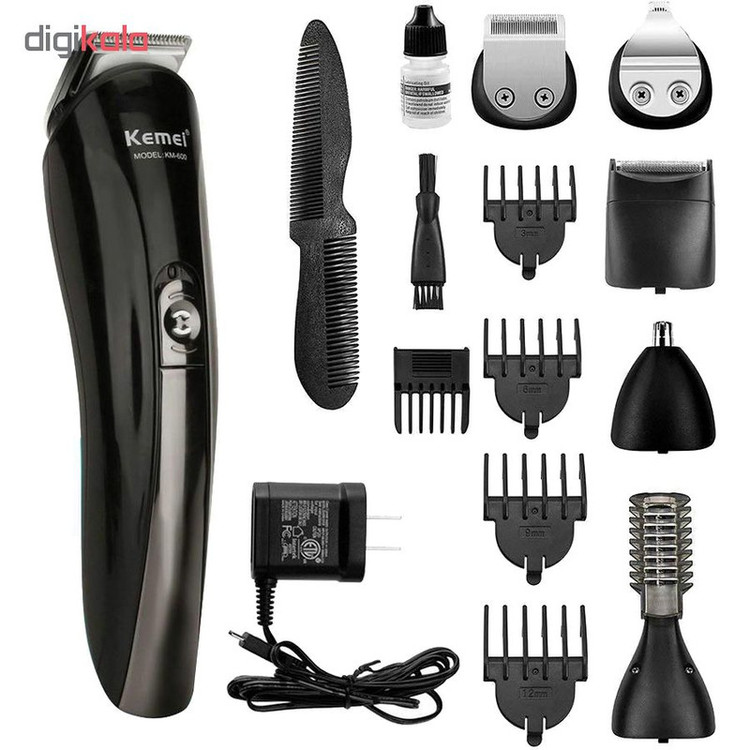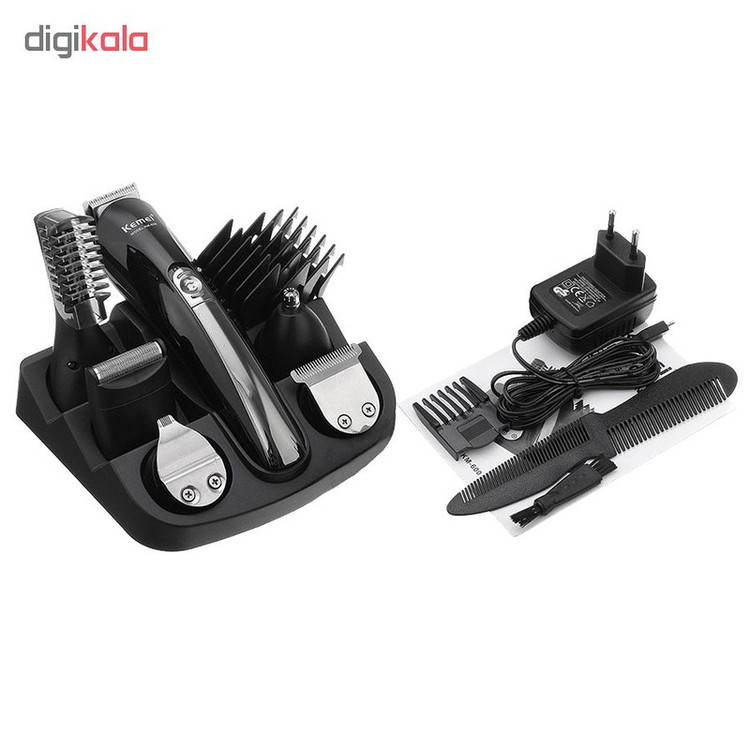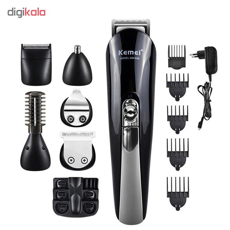 ست ماشین اصلاح کیمی مدل KM-600 دارای موتور پر قدرت و تیغ های فوق العاده حرفه ای می باشد. این دستگاه برای کوتاهی مو اصلاح کامل مو و برای موهای گوش و بینی و ابرو و برای مدل دار کردن ریش مناسب است که برای هر کار سری جداگانه دارد. شانه همراه با این دستگاه قابل تنظیم است که می توانید سایز های مختلف اصلاح کنید. این دستگاه دارای 4 عدد شانه ثابت و یک شانه متحرک است و این دستگاه دارای یک پایه است که می توانید سری های دستگاه را روی پایه قرار بدید.