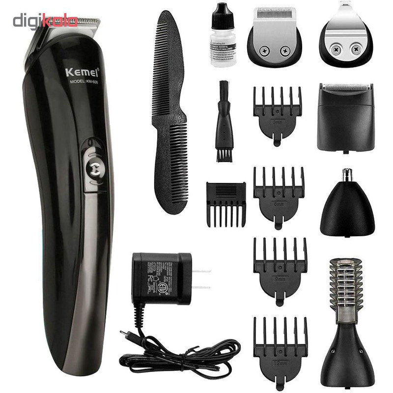ست ماشین اصلاح کیمی مدل KM-600 دارای موتور پر قدرت و تیغ های فوق العاده حرفه ای می باشد. این دستگاه برای کوتاهی مو اصلاح کامل مو و برای موهای گوش و بینی و ابرو و برای مدل دار کردن ریش مناسب است که برای هر کار سری جداگانه دارد. شانه همراه با این دستگاه قابل تنظیم است که می توانید سایز های مختلف اصلاح کنید. این دستگاه دارای 4 عدد شانه ثابت و یک شانه متحرک است و این دستگاه دارای یک پایه است که می توانید سری های دستگاه را روی پایه قرار بدید.