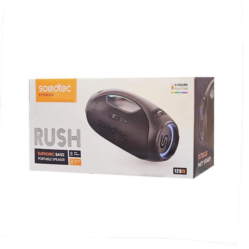 اسپیکر برند پرودو Soundtec مدل Rush با قدرت صدای 60 وات و باتری 5400 میلیآمپری، یکی از اسپیکرهای پرقدرت و با کیفیت است که به شما تجربهی گوش دادنی بینظیر را ارائه میدهد. علاوه بر این، بلوتوث نسخه 5.3 این اسپیکر به شما امکان اتصال سریع و پایدار به دستگاههای صوتی را میدهد. 2 عدد ساب 3 اینچ و 2 عدد توییتر 1.5 اینچ این اسپیکر به شکلی هنرمندانه با هم ترکیب شدهاند تا صداهای شفاف و قدرتمندی را تولید کنند. با مقاومت در برابر آب با گواهی IPX6، این اسپیکر مناسب برای استفاده در فضاهای خارج از منزل و ماجراجوییهای خارج از شهری میباشد. از دیگر نکات برجسته این اسپیکر میتوان به زمان پخش موسیقی آن اشاره کرد که با 50% صدا 8 ساعت و با 100% صدا 2 ساعت و 30 دقیقه به صورت مداوم برای شما پخش موسیقی به ارمغان میاورد. همچنین این اسپیکر دارای درگاه شارژ Type-c ، جک 3.5 میلی متری AUX و درگاه ورودی USB Flash میباشد. اگر به دنبال اسپیکری با کیفیت صوتی بالا، طراحی زیبا و قابل حمل هستید، Soundtec Rush گزینهی ایدهآلی برای شماست.