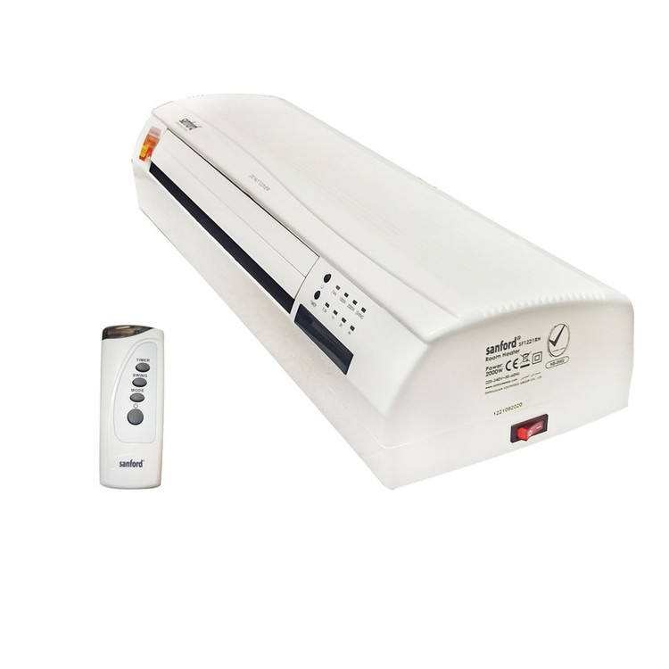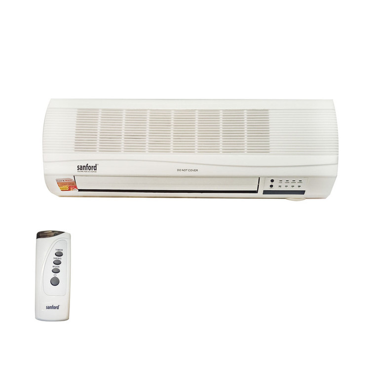 برند سانفورد با دارا بودن بیش از 1000 کالا در زمینه لوازم خانگی یکی از برند های معتبر در آسیا و اروپا محسوب می شود . فن هیتر دیواری طرح اسپلیت سانفورد مدل SF1221 یکی از دستگاههای بسیار مناسب برای تامین گرمایش در منزل و محل کار و یا هر مکان دیگر است. دلایل این برتری را در زیر می آوریم . این فن هیتر قابلیت تنظیم اتوماتیک حرارت را در دمایی که توسط کاربر تعیین شده و بر روی پنل دستگاه هم نشان داده می شود ، را دارد همچنین در دو توان 1000 و 2000 وات قابل تنظیم می توان آن را قرار داد.تایمر 8 ساعته دستگاه امکان بسیار خوبی برای کاربر می باشد تا بعد از ساعت معینی دستگاه را بطور خودکار خاموش کند. نصب دستگاه بسیار اسان بوده و بر روی دیوار چوبی و یا هر دیوار دیگری با دو پیچ قابل نصب است . با ریموت کنترل می توان تنظیمات دستگاه را انجام داده و آن را کنترل کرد .سیستم حفاظتی قطع اتوماjتیک در اثر افزایش دما نیز از امکانات ایمنی آن می باشد .بعد از خاموش کردن هیتر ، فن دستگاه ( بدون گرمایش )به مدت 30 ثانیه کار می کند تا حرارت مانده در قطعه گرم کننده را از دستگاه خارج کند . دقت شود که با تنظیم دما توسط ریموت کنترل و یا از روی پنل دمای نشان داده شده همان دمای تنطیم شده می باشد اما بعد از 3 ثانیه دمای محیط نشان داده می شود و این فقط برای نمایش دما است و دمای تنظیم شده همان است که در لحظه تنظیم مشاهده شده است. همچنین دقت شود با توجه به قرار گرفتن این دستگاه بر روی دیوار و ارتفاع بیش از یک و نیم متر و یا هر مقدار دیگر ، دمای تنظیم باید بالاتر باشد از دمایی که تمایل دارید در پایین اتاق و یا هر مکان بسته دیگر داشته باشید چون هوای گرم سبک تر است و قسمت بالاتر اتاق همیشه گرم تر خواهد بود . این مقدار را باید با توجه به ارتفاع قرار داده شده و محل قرار گیری با تجربه بدست بیاورید بعنوان مثال وقتی دستگاه را در ارتفاع 2 متر از کف اتاق نصب می کنید برای اینکه ارتفاع نیم متری از کف اتاق دمای 25 درجه داشته باشد باید تنظیم را روی 32 یا 33 قرار بدهید و یا کمی بالاتر و یا پایین تر ، که این مقادیر با تجربه بدست می آید .
