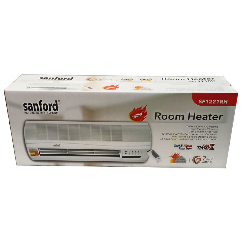 برند سانفورد با دارا بودن بیش از 1000 کالا در زمینه لوازم خانگی یکی از برند های معتبر در آسیا و اروپا محسوب می شود . فن هیتر دیواری طرح اسپلیت سانفورد مدل SF1221 یکی از دستگاههای بسیار مناسب برای تامین گرمایش در منزل و محل کار و یا هر مکان دیگر است. دلایل این برتری را در زیر می آوریم . این فن هیتر قابلیت تنظیم اتوماتیک حرارت را در دمایی که توسط کاربر تعیین شده و بر روی پنل دستگاه هم نشان داده می شود ، را دارد همچنین در دو توان 1000 و 2000 وات قابل تنظیم می توان آن را قرار داد.تایمر 8 ساعته دستگاه امکان بسیار خوبی برای کاربر می باشد تا بعد از ساعت معینی دستگاه را بطور خودکار خاموش کند. نصب دستگاه بسیار اسان بوده و بر روی دیوار چوبی و یا هر دیوار دیگری با دو پیچ قابل نصب است . با ریموت کنترل می توان تنظیمات دستگاه را انجام داده و آن را کنترل کرد .سیستم حفاظتی قطع اتوماjتیک در اثر افزایش دما نیز از امکانات ایمنی آن می باشد .بعد از خاموش کردن هیتر ، فن دستگاه ( بدون گرمایش )به مدت 30 ثانیه کار می کند تا حرارت مانده در قطعه گرم کننده را از دستگاه خارج کند . دقت شود که با تنظیم دما توسط ریموت کنترل و یا از روی پنل دمای نشان داده شده همان دمای تنطیم شده می باشد اما بعد از 3 ثانیه دمای محیط نشان داده می شود و این فقط برای نمایش دما است و دمای تنظیم شده همان است که در لحظه تنظیم مشاهده شده است. همچنین دقت شود با توجه به قرار گرفتن این دستگاه بر روی دیوار و ارتفاع بیش از یک و نیم متر و یا هر مقدار دیگر ، دمای تنظیم باید بالاتر باشد از دمایی که تمایل دارید در پایین اتاق و یا هر مکان بسته دیگر داشته باشید چون هوای گرم سبک تر است و قسمت بالاتر اتاق همیشه گرم تر خواهد بود . این مقدار را باید با توجه به ارتفاع قرار داده شده و محل قرار گیری با تجربه بدست بیاورید بعنوان مثال وقتی دستگاه را در ارتفاع 2 متر از کف اتاق نصب می کنید برای اینکه ارتفاع نیم متری از کف اتاق دمای 25 درجه داشته باشد باید تنظیم را روی 32 یا 33 قرار بدهید و یا کمی بالاتر و یا پایین تر ، که این مقادیر با تجربه بدست می آید .